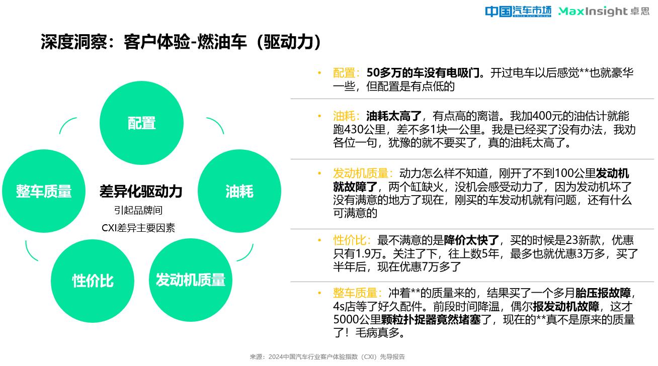 3、燃油车和新能源汽车的客户体验差异化驱动力分析。