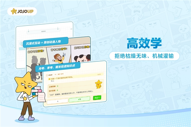 内容研发层面,JOJOUP更组建了由中学教育专家、人民日报签约作家董腾担纲主创,集结数十位一线资深教研专家及教育心理学专家等的专业团队,确保内容兼具专业性与适配性。