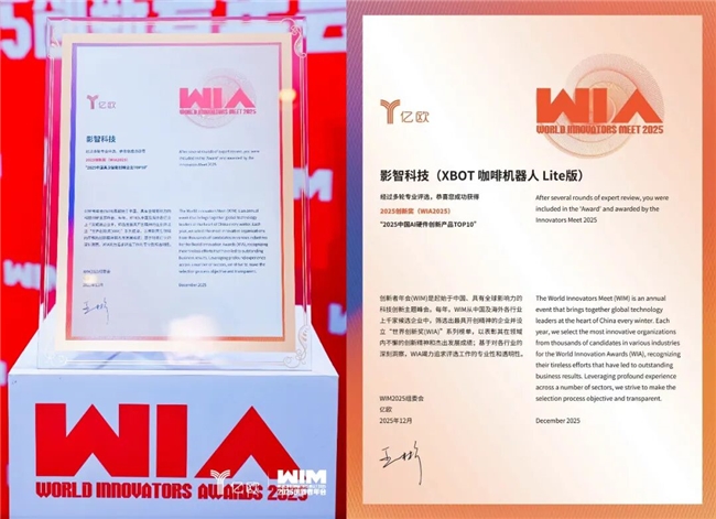 12月3日2025年创新者年会现场,影智科技一举斩获“2025中国具身智能创新企业”与“2025中国AI硬件创新产品”双料TOP10。
