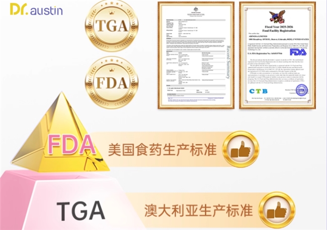 Dr. Austin益安美始终将“安全”与“科学”视为品牌不可动摇的基石,主动寻求并成功通过TGA这一国际权威认证,是品牌对自身产品的信心体现,更是对全球消费者的一份郑重承诺。这证明了益安美从研发到生产,始终践行着与国际接轨的高标准。目前,益安美产品已入驻美国、新加坡、新西兰等国家线下专业药房上架,并长期占据黄金展位,获得驻店药剂师的倾力推荐,同时成为消费者日常营养补充与分阶孕养的信赖首选。