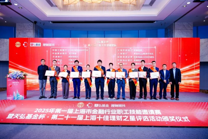 12月12日,2025年第一届上海市金融行业职工技能邀请赛暨天弘基金杯·第二十一届上海十佳理财之星颁奖典礼在浦东中国金融信息中心隆重举行。