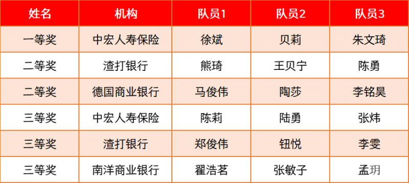 排名不分先后,按获奖团队名称笔画排序