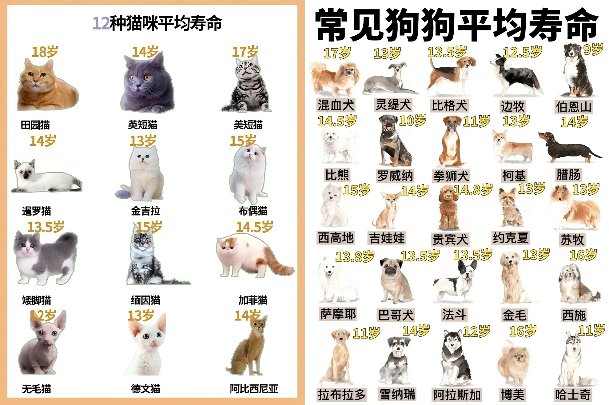 不同犬猫品种的平均寿命存在差异/图源:小红书