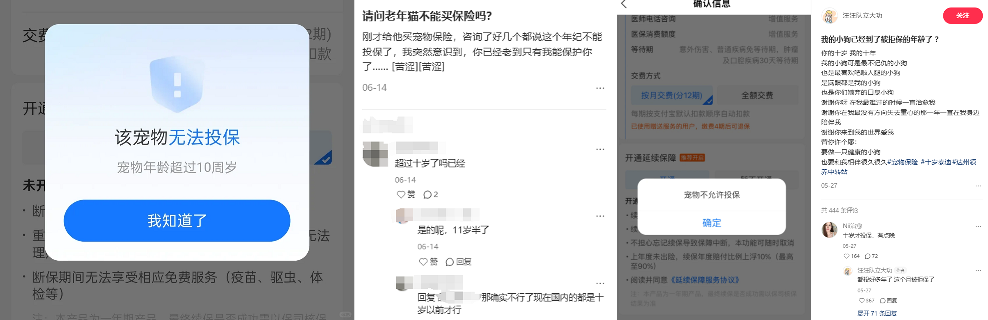 不少宠物主称10岁以上的宠物无法投保/图源:小红书
