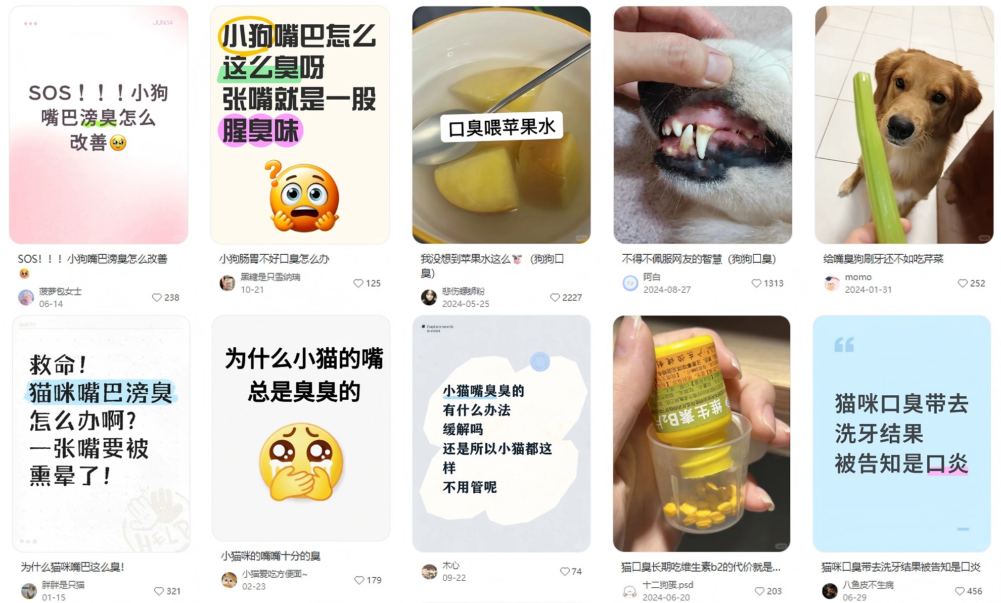 口臭是犬猫普遍问题,进入老年期后口腔健康问题更是频发/图源:小红书