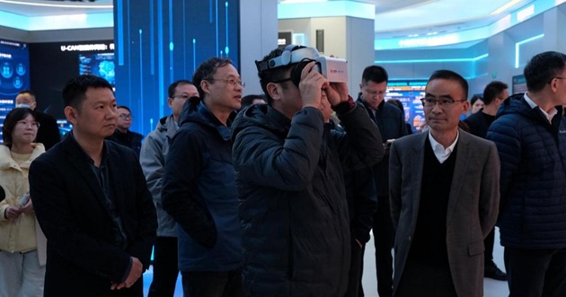 (湖南省科技厅技术创新处一级调研员黄凯歌体验纳德光学超高清晰XR头显)