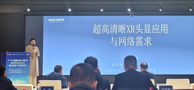 12月23日下午,由湖南省科学技术厅指导,多方共同主办的“U-CAN超融合接入网技术阶段性成果发布会暨毫米波产业发展论坛”在长沙顺利举行。此次论坛发布了“超高清视频无损实时传输系统”的阶段性突破成果,基于纳德光学近眼显示模组开发的U-CAN毫米波XR高清头显备受瞩目,吸引了众多与会领导及行业专家驻足体验。纳德光学作为产业应用代表受邀发表主题演讲,详细展示了U-CAN毫米波XR高清头显在产业领域的积极探索与应用。