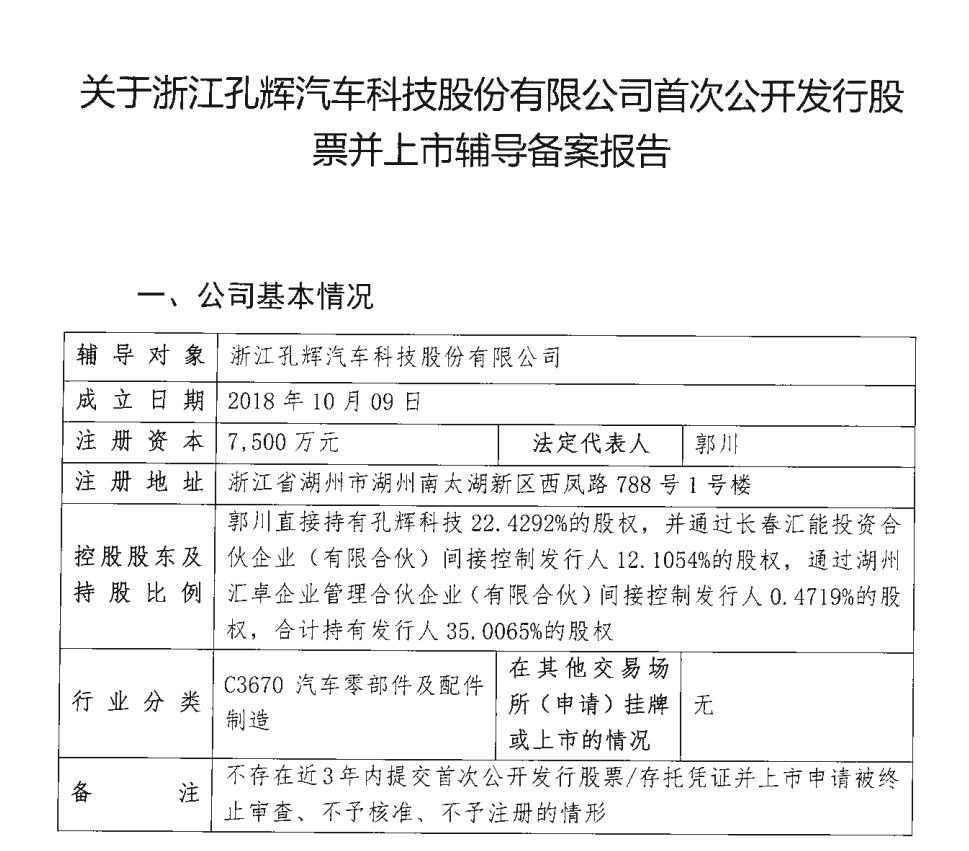 近日,国产空气悬挂公司浙江孔辉汽车科技股份有限公司(以下简称“孔辉科技”)在浙江证监局完成IPO辅导备案登记,辅导机构为中信建投。这家由中国工程院院士郭孔辉父子及学生组成核心团队的创业公司,冲刺资本市场。