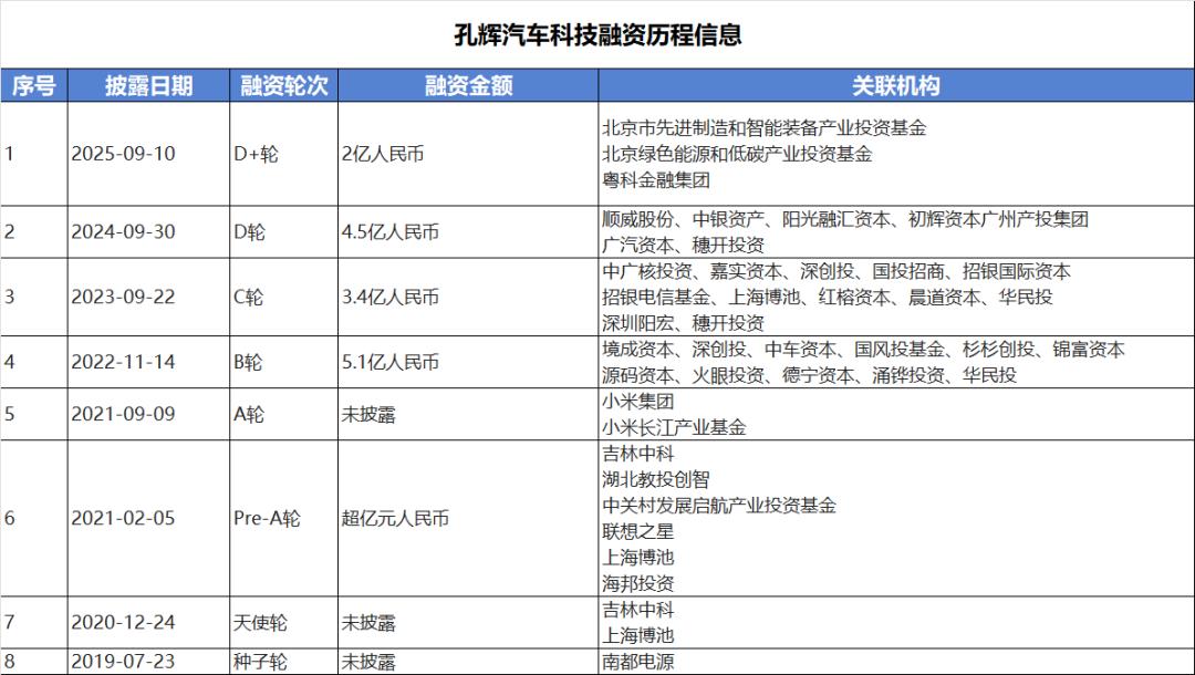 据悉,在2025年9月份,孔辉科技完成2亿元D+轮融资,投资方包括北京市先进制造和智能装备产业投资基金(有限合伙)、北京市绿色能源和低碳产业投资基金(有限合伙)、广东粤科资本等,投后估值约67亿元。