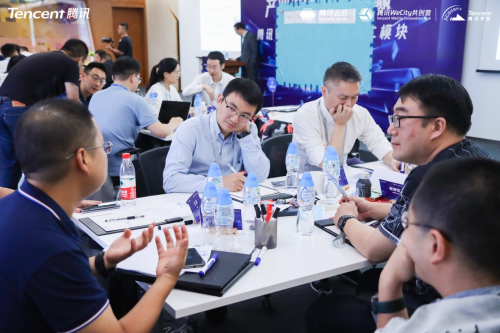 除了行业大咖解疑释惑,本次腾讯WeCity共创营还为企业学员提供了充分的交流、实践机会。现场学员分成“数智融合”、“基层社会治理”、“县域智慧城市”、“产业创新中心”、“数字政府”、“智慧能源”六个课题组,各组围绕“场景与方案”进行共创。整个环节充满挑战感,无论是时间规则、课题制定,还是小组PK,都贴近一个企业发展所面临的各方挑战。如何应对、甚至从中挖掘商机成了对学员们的考验。