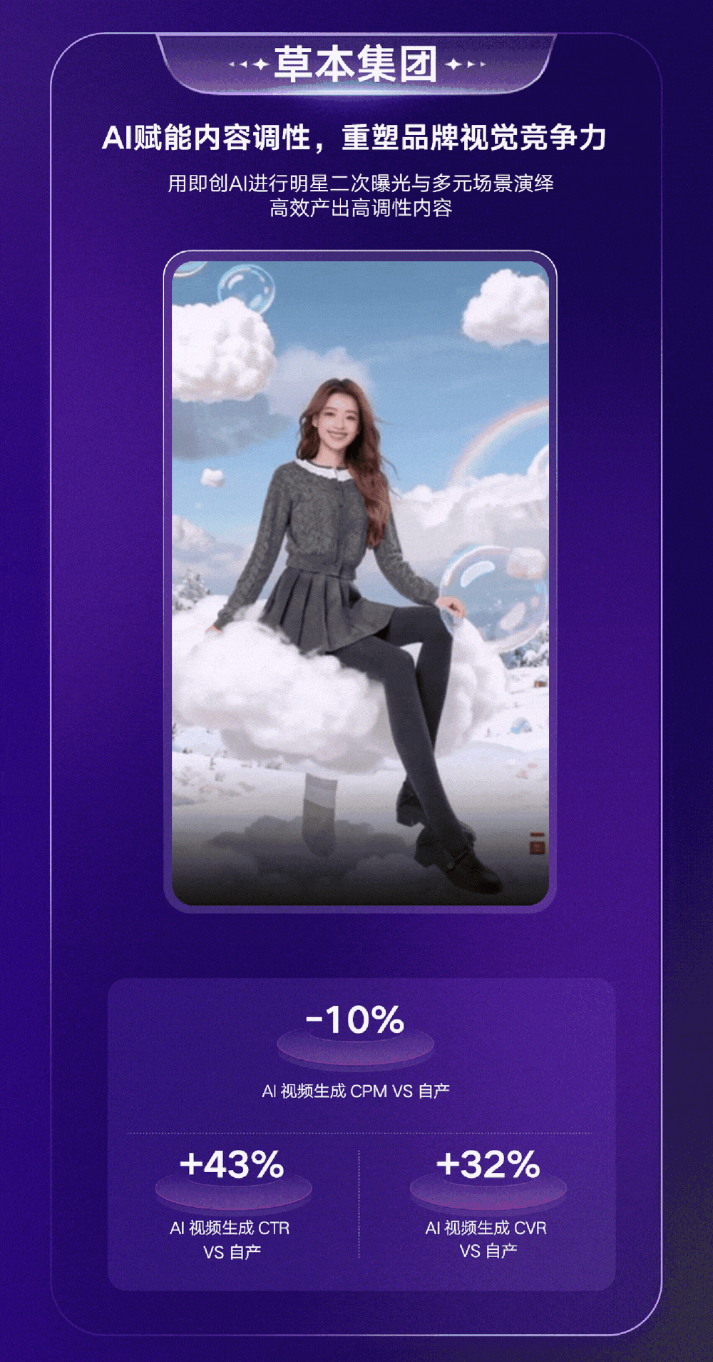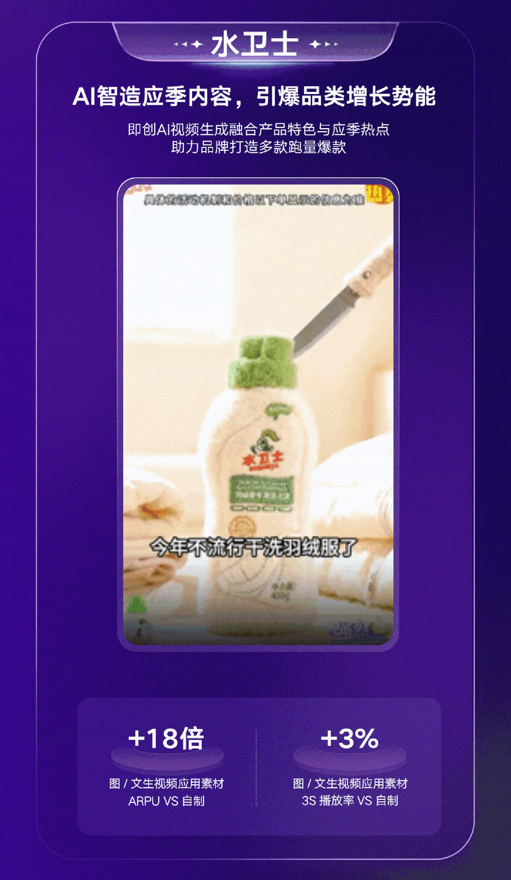 一、三大运营优势,驱动增长新引擎 本次大赛中,高价值案例的共同点在于,它们并非简单使用工具,而是形成了一套将AI深度嵌入工作流的系统化运营策略。这些策略可提炼为以下三大重点优势: 第一,低成本创意验证与快速测试。 传统创意生产因成本与周期限制,难以进行海量A/B测试。即创AI的核心优势在于,能够近乎零成本地快速生成多样化视频素材(如口播、创意空镜)。品牌可借此对核心商品、利益点或活动主题进行多角度、多形式的创意验证,快速锁定高潜力方向,从而沉淀出属于品牌自身的“爆款素材方法论”,大幅提升成功概率。 第二,素材规模化生产与热点敏捷响应。 当某个素材方向被验证有效后,面临的核心问题是如何快速规模化,并避免简单混剪导致的同质化。即创AI的“图生视频”及智能裂变能力,可对优质素材进行元素替换、场景衍生,高效生产大量“形似而神不异”的关联素材,实现批量供给。同时,其“文生视频”功能能极速响应社会热点与节日节点,帮助品牌在第一时间产出契合时宜的内容,抓住转瞬即逝的流量窗口。 第三,素材资产化管理与效能焕新。 AI的价值不仅在于创造“增量”,也在于优化“存量”。对于已积累大量静态商品图片的商家,AI可将其批量转化为动态视频,建立起可持续的原料供给链路。更重要的是,对于已进入衰退期的优质老素材,可通过AI智能换背景、局部重塑等方式进行“焕新”,有效延长其投放生命周期,让历史创意投入持续释放价值,实现营销资产的数字化增值。 二、十大案例出炉,诠释增长新范式 经过多维评审,本次大赛最终评选出最具代表性的10个获奖案例,覆盖美妆、日化、社交、服饰等多行业。这些案例生动表明,AI驱动增长并非抽象概念,而是能够与不同行业的营销目标、客群特征及内容形态深度融合,演化出多元且可复制的实效路径。 “使用即创生成的AI创意片头,ROI甚至高于自制素材。”一位美妆头部品牌如此总结。社交行业某品牌则表示:“借助AI快速产出节日热点素材,在预算收紧的Q4实现了高性价比跑量。”品牌的真实反馈表明,即创AI的价值已切实体现在效果提升与效率优化中。 巨量引擎、即创平台将持续与品牌共同探索AI创意策略的落地应用,助力解决效率挑战,将创意潜能转化为可衡量的业务增长。
