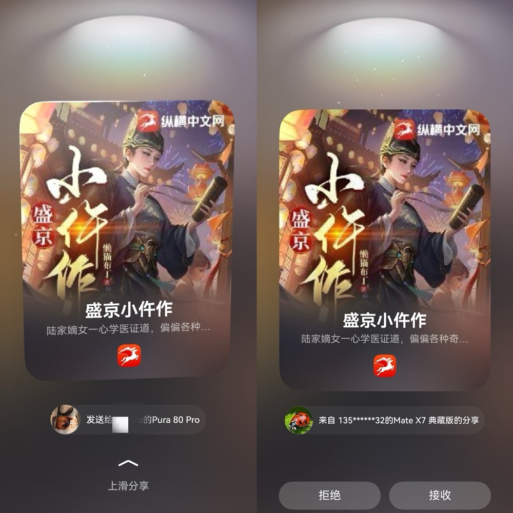 如果你和我一样,看到好书就忍不住想安利给身边的书荒搭子,鸿蒙版纵横小说的碰一碰和隔空传送功能绝对会让你大呼过瘾。两台鸿蒙手机轻轻一碰,精彩章节瞬间流转,那种科技带来的仪式感,比发个冷冰冰的链接要带感得多。